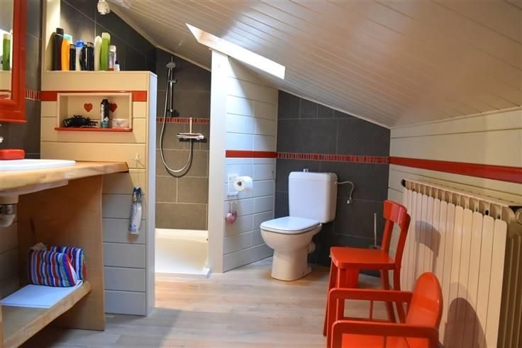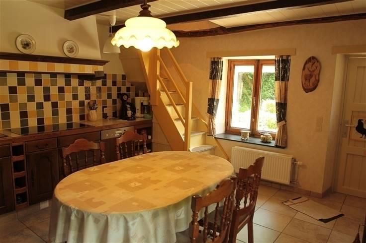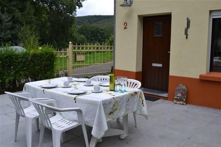 Het pand bestaat uit twee volkomen autonome delen. Het voorste deel omvat: een terras; op het GV een keuken met keramische kookplaat en een living met gietijzeren houtkachel; op V1 een ruim bureel dat kan worden omgewerkt tot twee slaapkamers en een ruime badkamer met douche en ligbad, op V2 een ruime slaapkamer en een bergruimte. Het achterste deel omvat: een terras, op GV een inkom/keuken, een living, een badkamer met douche en een apart toilet; op V1 een ruime slaapkamer met schattig deurtje naar buiten en een kleine bergplaats. Een tussendeur scheidt beide delen. Aan het gebouw paalt een klein atelier, een ruime constructie waarin brandhout en allerlei tuingerief kan worden ondergebracht en een tuinhuis. Het huis wordt centraal verwarmd(citern van 2000l). Elke kamer heeft een eigen radiator, behalve beide slaapkamers. Overal zijn houten ramen met dubbele beglazing; in beide slaapkamers en de badkamer vooraan werden Velux-ramen voorzien. Het dak werd belegd met natuurleien. Elektriciteit vernieuwd en gekeurd. Specifieke kenmerken: vooreerst de typische Ardense charme. Verder: tijdens de zomer blijft het binnen altijd fris; vlakbij vertrekken allerlei wandelpaden; de Semois met kanohalte ligt om de hoek. Gelegen in bosgebied, Site Natura 2000. Tevens ook gelegen in zone van landschapsbelang in 'Parc Naturel d'Ardenne Méridionale' en 'Parc National de La Vallée de la Semois'. Gelegen in een zone waar geen vaste aansluiting op het watersysteem is. Het ligt in de nabijheid van