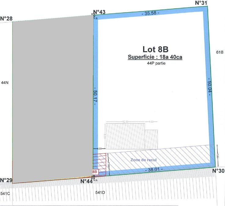 Kavel 8B: 1.840 m2 (+- 35 m x 50 m).