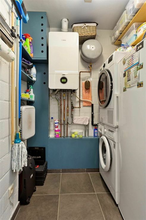 Achteraan het gebouw is er een gemeenschappelijke fietsen- en afvalberging.