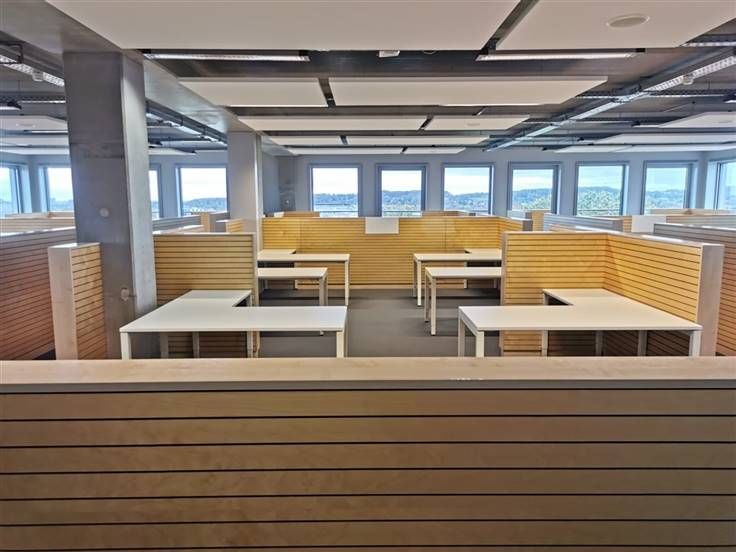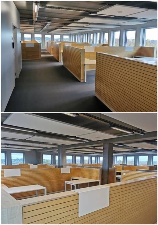 - Akoestische baffels in plafond