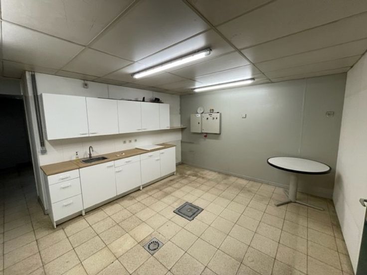 Op het eerste verdiep, toegankelijk met een trap van buiten uit, vinden we een keuken met sanitaire voorzieningen en een extra opbergruimte. Er is ook een bedrijfslift aanwezig.