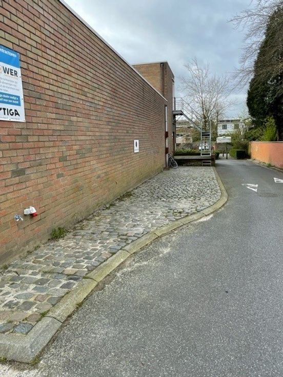 Aan de ingang zijn er 5 privé-parkeerplaatsen inbegrepen. Een loskade met aanrijzone zit aan de zijkant van het gebouw. Achteraan het gebouw is er voldoende extra parkeergelegenheid beschikbaar.