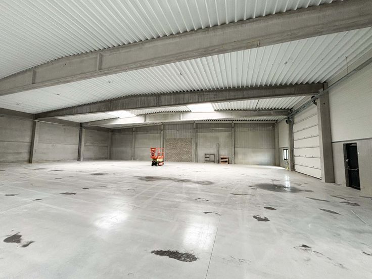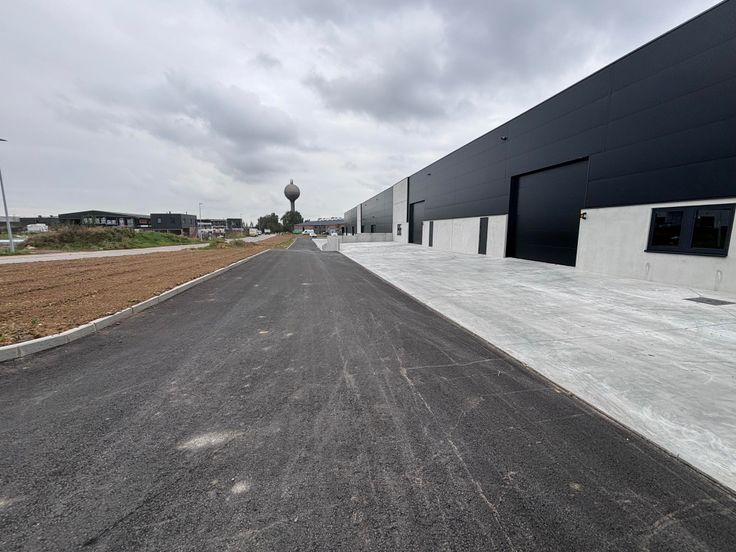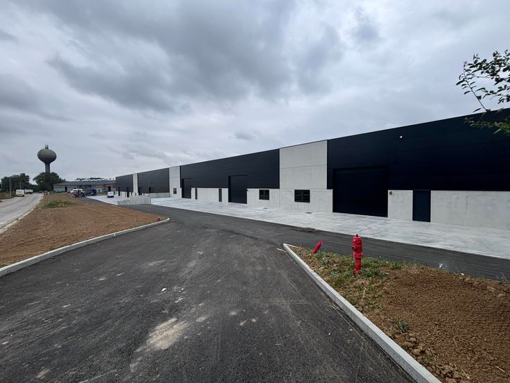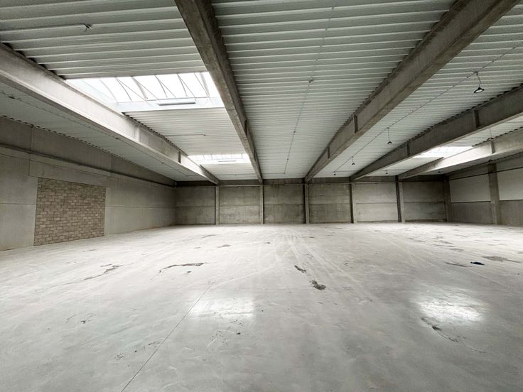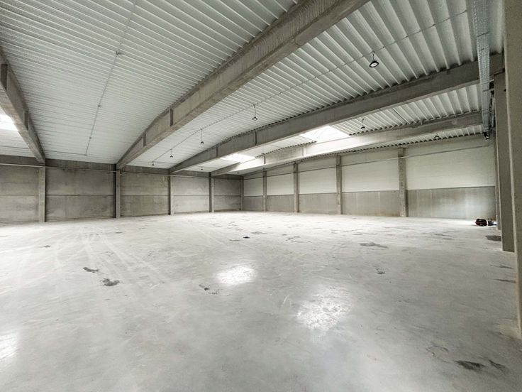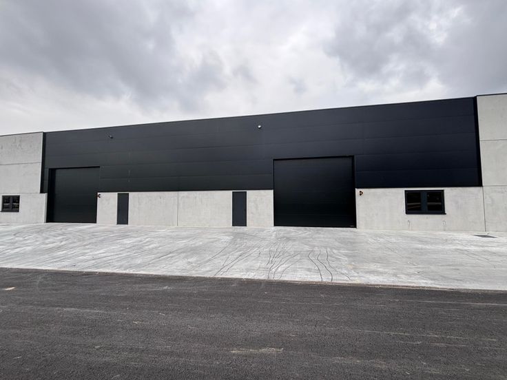 Chaque unité comporte: Structure en béton. Dalle de béton lissé au sol avec une capacité de charge de 2,5T/m². Toiture en panneaux sandwichs métalliques isolée et équipée de 2 lanterneaux. 5,50m de hauteur libre sous poutre. Façades: soubassement en paroi béton et murs en panneaux sandwichs métalliques. 1 porte d'accès piéton alu (1m x 2,2m) / 1 grande porte sectionnelle isolée (5m x 4,48m Ht) / 1 fenêtre alu DV (2m x 1,35m Ht). Possibilité d'installer 1 wc et 1 kitchenette (évacuations prévues), possibilité de prévoir un espace bureau. Chauffage, électricité et équipement à charge du locataire. Dimensions d'une unité: largeur 18,36 m - profondeur 30m. Informations données à titre indicatif et non contractuel.