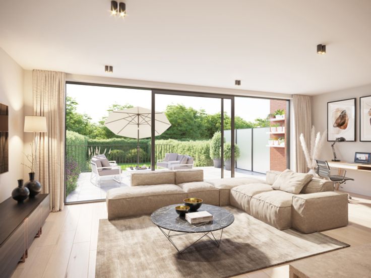 Te koop Gelijkvloersappartement met één slaapkamer.