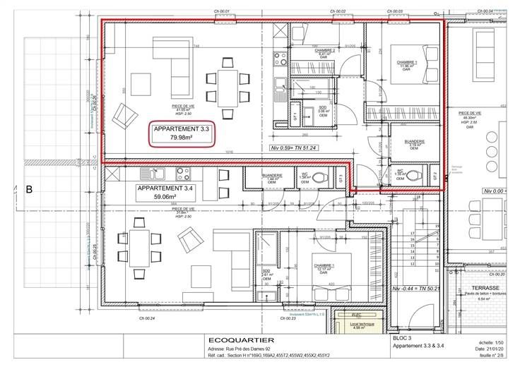 Situé au rez-de-chaussée, dans l'Eco-quartier "Pré Des Dames", superbe appartement se composant comme suit :