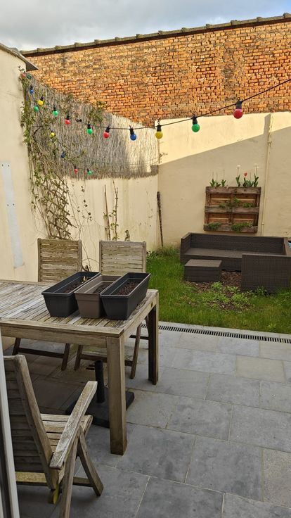 TE KOOP: Gezellig rijhuis met stadstuin. In de Rietstraat te Gent vinden we dit gezellige, gerenoveerde rijhuis met een EPC van 156. Het huis biedt op het gelijkvloers een hal, een lichtrijke woonkamer en een keuken. De lichtrijke woonkamer geeft uit op de ommuurde stadstuin. Extra troef: er is een droge kelder aanwezig. Op de eerste verdieping is de badkamer (met dubbele wastafel, ligbad, douche en de mogelijkheid om een wasmachine aan te sluiten), een apart toilet en een eerste slaapkamer aanwezig. Op de tweede verdieping bevinden zich nog een tweede en een derde slaapkamer. De zolder is open gemaakt en biedt een ruimte om bijvoorbeeld een bureau of een speelkamer van te maken. Het betreft een aangename buurt op wandel- en fietsafstand van centrum Gent (Vlaamse Mobiscore: 9,2/10).