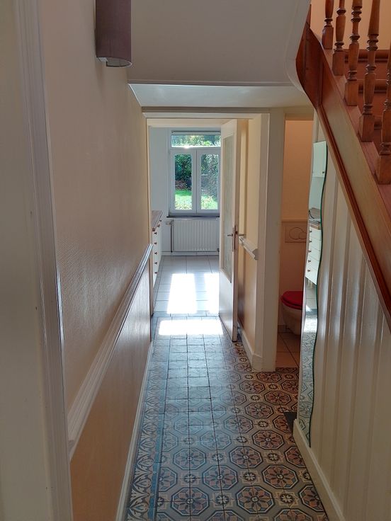 Maison d'habitation agréable et confortable très bien entretenue, proche de toutes commodités. RDC: hall d'entrée, salon, salle à manger, WC, cuisine équipée, petite terrasse partiellement couverte, jardin orienté plein sud, tranquille. Au 1er étage: 2 chambres et 1 SDB avec WC, espace buanderie. 2ème étage: 2 chambres et 1 SDD avec WC (les 3 WC sont suspendus de type Geberit). Grandes caves. Double vitrage excepté sur les paliers.