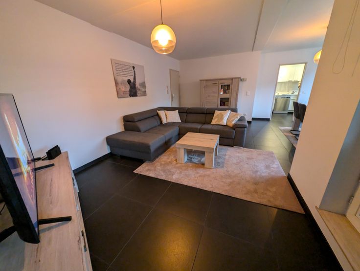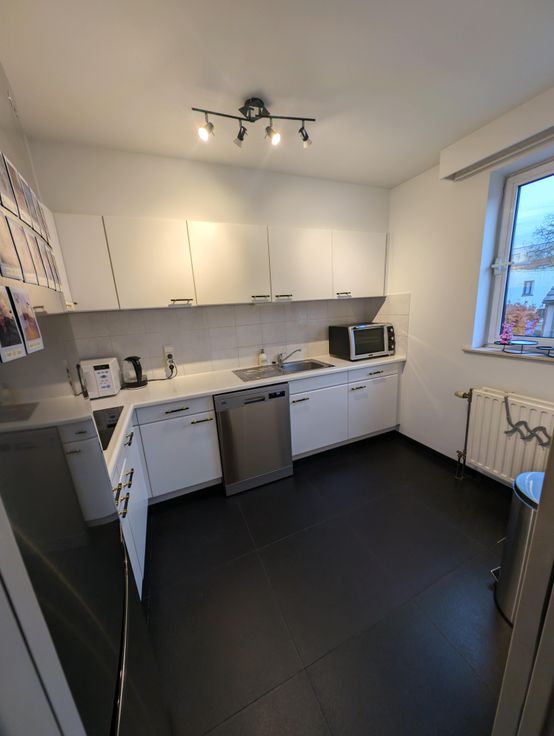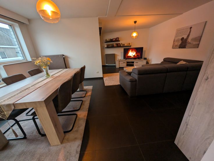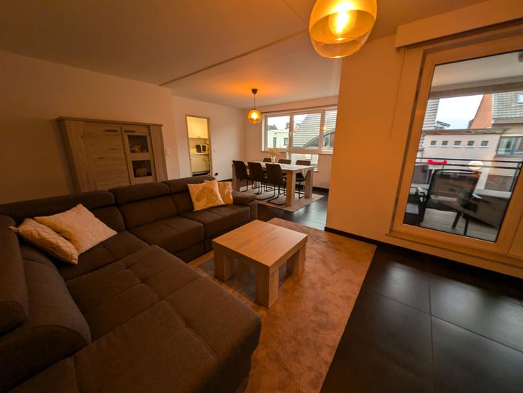 U betreedt vervolgens de woonkamer met zeer veel lichtinval en overdekt terras, de keuken is voorzien van alle comfort en toestellen.