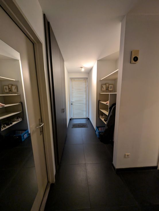 U betreedt het appartement vanuit de inkomhal met ruime opbergmogelijkheden. Via de inkom kan u naar de eerste slaapkamer met ingebouwde kledingkast en eveneens naar de tweede slaapkamer. Er is een apart toilet en badkamer met ligbad/douche, een recent vernieuwde boiler en aparte ruimte voor droogkast + wasmachine.