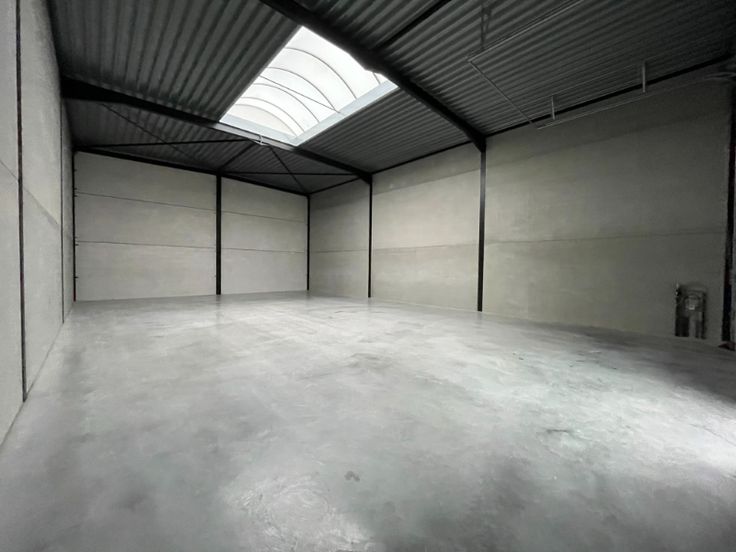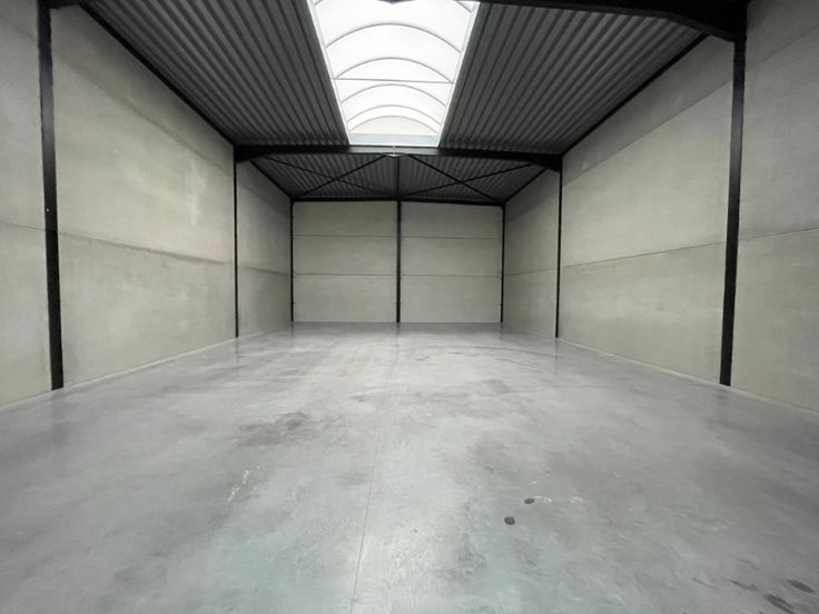 Nieuwbouw magazijn te huur in Evergem. Vlotte bereikbaarheid via de R4 naar de E17, E40 en E34. Deze KMO-units van 210m² met 2 parkeerplaatsen. De loods wordt voorzien van een staalstructuur met betonnen of cellenbetonwanden. Verder zijn voorzien: polybetonvloer (3,5T/m²), geïsoleerd steeldeck, lichtstraat met rookluik, automatische sectionale poort, deur en raampartij. De verhuurder voorziet een aantal stopcontacten en verlichting (LED) in de unit. Alle nutsvoorzieningen komen tot in het gebouw. Het magazijn heeft een minimum vrije hoogte van circa 6m en een geïsoleerd steeldeck met polycarbonaat lichtstraten.