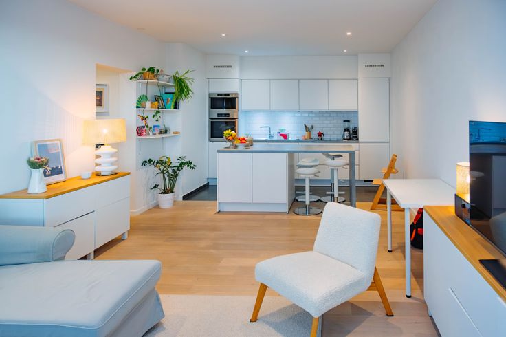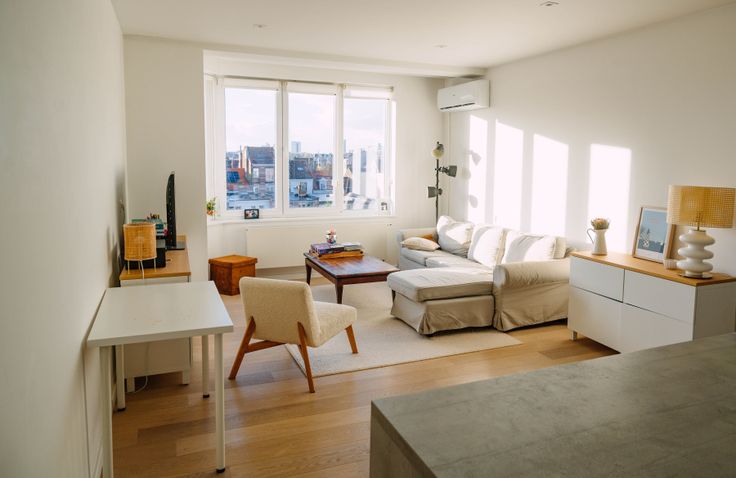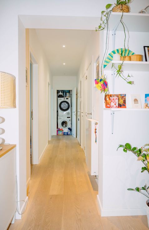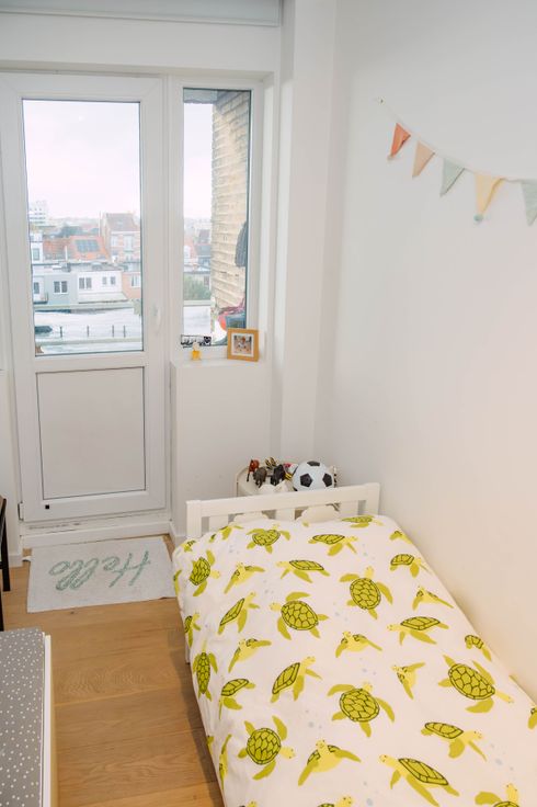 Bel appartement de 84 m2 selon PEB. Double vitrage, plancher en chêne, circuit électrique conforme ... Agréable et lumineux, situé au 4ème et dernier étage d'une petite copropriété parfaitement entretenue, offrant une vue dégagée, comprenant hall d'entrée, wc séparé avec lave mains, espace de vie avec cuisine ouverte super-équipée (LV, Four, Hotte, Frigo, ...), deux chambres de +/-13m² et +/- 9m² idéal pour enfant + bureau de +/- 6m² avec balcon (possibilité de faire une grande chambre avec la petite chambre et le bureau), salle de bain avec baignoire, espace buanderie séparé. Cave.