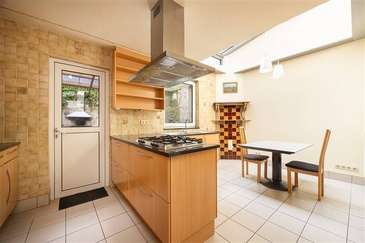Groot, authentiek burgerwoning met 6 kamers en tuintje op toplocatie in Antwerpen Wanneer je de brede inkomhal hal binnenstapt, vallen de hoge plafonds met sierlijsten en de prachtige authentieke houten trap achteraan meteen op. De dubbele deur rechts geeft uit op de leefruimte van 40 m² met en authentieke parketvloer.Een trapje naar boven leidt je naar de tussenruimte. Achteraan heb je de betegelde keuken, die enorm licht is dankzij de nieuwe lichtstraat hier. De keuken is enorm praktisch, met een kookeiland met gasvuur, een dampkap, een dubbele spoelbak met zicht op de tuin. In de grote kastenwand aan de linkerzijde heb je nog een oven en een microgolfoven, een koelkast, diepvriezer, extra werkruimte en heel wat kasten. De achterdeurgeeft uit op een leuk, betegeld stadstuintje, dat oost-gericht is en een stukje overdekt is. Via de monumentale houten trap in de hal ga je naar boven, waar je op de tussenverdieping, waar je een eerste kamer hebt, maar die je evengoed kunt transformeren tot een gloednieuwe badkamer. Op de eerste verdieping vind je twee grote slaapkamers. Op de tweede tussenverdieping heb je een badkamer, met een douche, lavabo en toilet. De tweede verdieping is momenteel een enorme kamer van 40 m². De derde verdieping bevat 2 kamers en een keukentje, ideaal als studio of voor je student. Extra bergruimte vind je in de enorme, droge kelder van 40 m². Voor meer info: https://www.immovasta.be/panden/gegevens/13642/