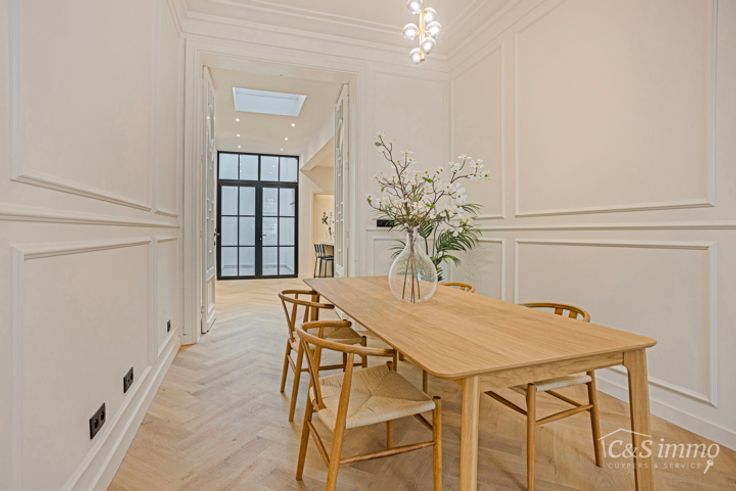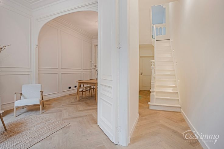 Bent u op zoek naar een woning die luxe, ruimte en karakter perfect combineert? Dit volledig gerenoveerde herenhuis, klaar voor zijn eerste ingebruikname, biedt alles wat u zoekt. Met oog voor detail en hoogwaardige afwerking is deze woning een droomplek voor gezinnen of professionals. Deze prachtige woning straalt authenticiteit en modern comfort uit. De ruime leefruimte valt meteen op door de hoge plafonds, elegante hoge deuren en een stijlvolle visgraat parketvloer. De hypermoderne keuken is een waar pareltje, voorzien van een ruim keukeneiland dat zowel praktisch als stijlvol is. Daarnaast is de keuken uitgerust met een inductiekookplaat met ingebouwde afzuiging, een oven, een microgolfoven, een bordenverwarmer, vaatwasser en een ruime koelkast. Hier vindt u alles wat nodig is om met plezier te koken en gasten te ontvangen. Het huis beschikt over vier ruime slaapkamers, waaronder een charmante kamer met mansarde, en een tussenverdieping die perfect kan dienen als kantoor, praktijkruimte of extra leefruimte. De twee badkamers zijn luxueus afgewerkt en voorzien van een inloopdouche, lavabo en toilet. Zowel de voor- als achtergevel zijn volledig geïsoleerd, wat bijdraagt aan een aangenaam binnenklimaat en energiezuinig wonen. Een groot pluspunt zijn de twee terrassen, waar u kunt genieten van rust en privacy, ideaal voor een ontbijt in de ochtendzon of een ontspannen avond. Daarnaast biedt de woning een ruime kelder met aansluitingen voor wasmachine en extra opslagmogelijkhe
