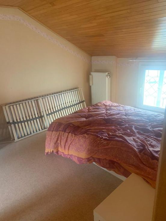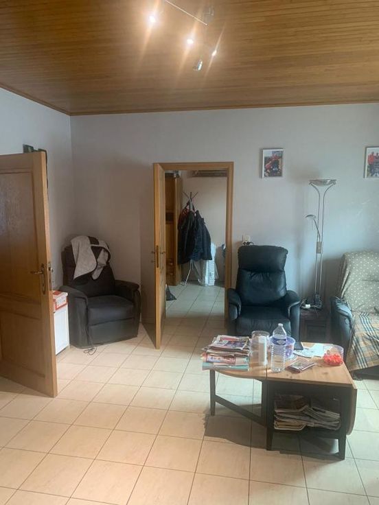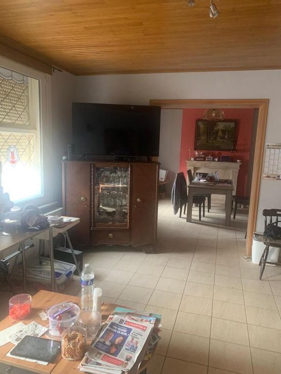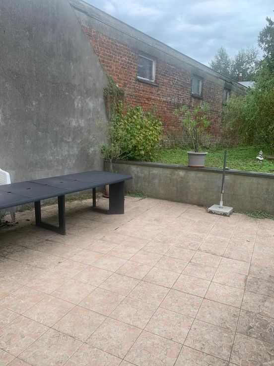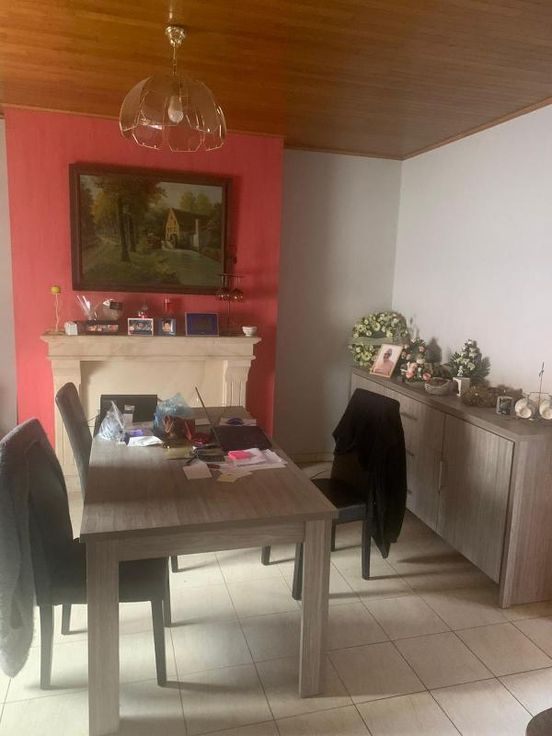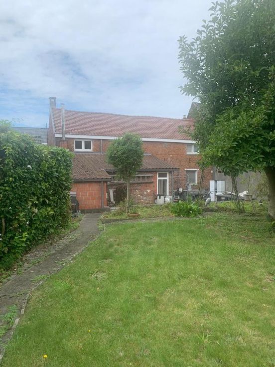 Maison d'habitation 2 façades, 3 ch., terrasse et jardin COMPOSITION Rez-de-chaussée : hall d’entrée, salon, bureau, salle-à-manger, cuisine, arrière-cuisine, w.-c. Etage : hall de nuit mansardé, w.-c., salle de bains, 3 chambres. Caves au sous-sol. Grenier (trappe). Extérieur : terrasse avec jardin EQUIPEMENTS : Raccordement à l’égout. Châssis en PVC double vitrage. Chauffage au mazout (inf. à 3.000 litres)