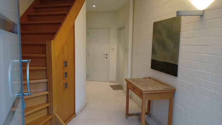 Bovenverdieping: 3 slaapkamers, toilet en nachthal. Badkamer met ligbad, douche en badkamermeubel, wasmachine en droogkast.