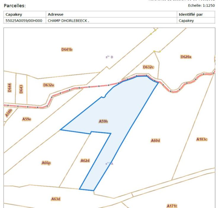 Une pâture entourée de petits bosquets, d’une superficie globale selon extrait cadastral récent de cinquante-deux ares quatre-vingt-trois centiares (52 a 83 ca) se trouvant au lieu-dit « Champ Dhorlebeeck », cadastrée suivant extrait de matrice cadastrale récent section A, numéros 0059HP0000. La parcelle est reprise partiellement en zone agricole et partiellement en zone forestière au plan de secteur Ath-Lessines-Enghien. La parcelle est reprise en zone d’aléa d’inondation faible d’après consultation des cartes sur Walonmap. Le bien est occupé selon bail de droit commun verbal par un tiers qui a payé le location jusqu’en octobre 2025 lequel fauchera – pour lui-même – la pâture entre le mois de juin et le mois d’août 2025 et se réserve le dr es saules plantés par lui sur la parcelle.