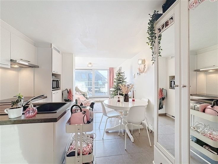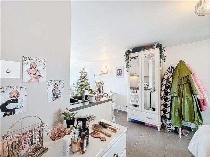 Deze instapklare studio bevindt zich op de vierde verdieping (geen lift) en ligt op een gunstige locatie nabij de R4, E17, E40, het openbaar vervoer en diverse winkelcentra. De studio heeft een totale oppervlakte van 35m². Het slaapgedeelte vormt een harmonieus geheel met de leefruimte (24m²). De open keuken is praktisch ingericht en voorzien van een spoelbak, koelkast en kookplaat. Daarnaast is er een aparte berging met een aansluiting voor een wasmachine. De badkamer is uitgerust met een inloopdouche en wastafel. Dé absolute troef van deze woonst is het rondom gelegen terras (50m²), waar u dankzij de oost-, zuid- en west gerichte oriëntatie de hele dag door van de zon kunt genieten. Het huurcontract heeft een looptijd van 3 jaar en inschr Ref : 64091