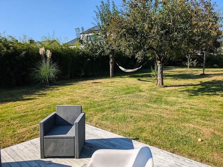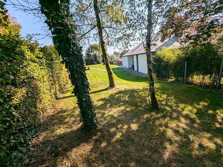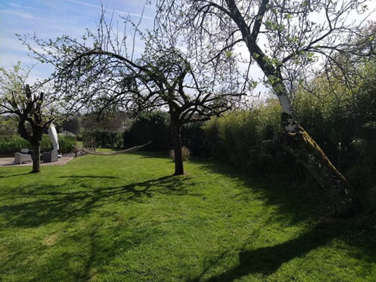 - Extérieurs : Vaste jardin orienté sud avec 3 terrasses (une couverte - une avec pergolas et une vaste terrasse en bois exotique) - mare avec carpe Koïs - Abris de jardin
