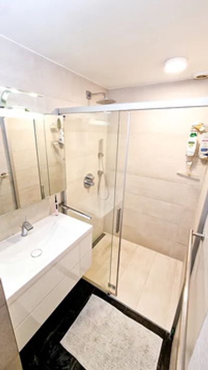 - RDC: Piece de vie 85m2 comprenant Hall-salon-salle à manger-coin bibliothèque -foyer central et places assises - WC -salle de douche- 1 chambre enfant - 1 belle chambre - 1 belle suite parentale avec SDB - vaste garage et sas rangement.