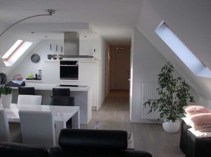 Voor de bouw van het appartement werd gekozen voor kwaliteitsmaterialen met nadruk op de zeer grote leefruimte van 63m². Door de grote raampartijen en dakvensters krijgt men onmiddellijk een sterk gevoel van ruimte en licht. Bijzonder is ook de witte maatwerk keuken, volledig geïnstalleerd met toestellen van de kwaliteitsmerken Novy & Siemens.
