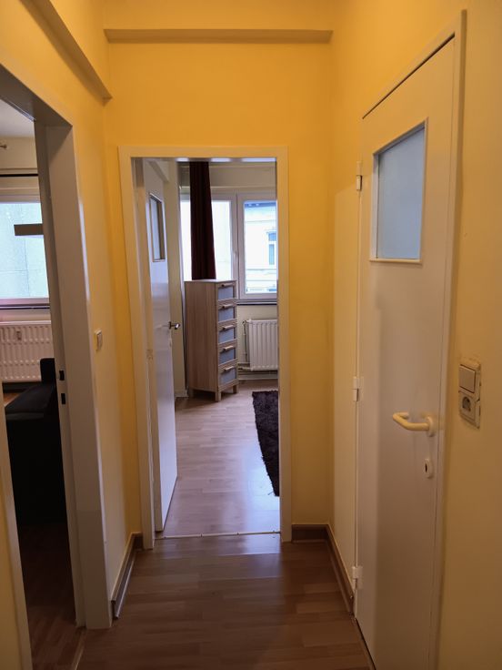 Appartement agréable, rénové et meublé. Idéal pour un couple. Salon avec extension salle à manger. Cuisine équipée. Grande chambre à coucher. Salle de bain avec machine à laver et sèche-linge. Toilette séparée. Entrée avec visiophone. Buanderie et cave incluses.