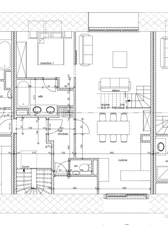 Présence de meubles fournis tel qu’un grand buffet, une grande table, meuble de télévision, table basse, dressing.
