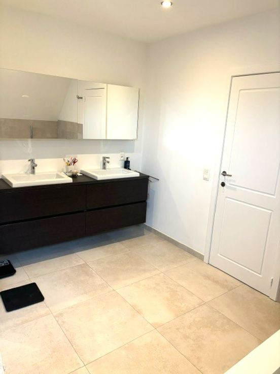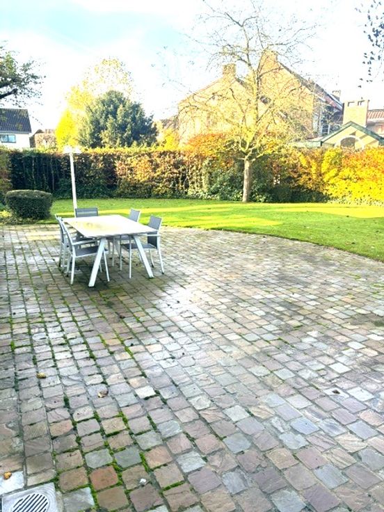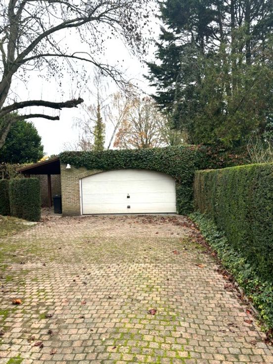 Via de keuken kan u ook naar de tuin met groot terras. Achterin de tuin, op het einde van de oprit, is er nog een dubbele garage met plaats voor 2 wagens.