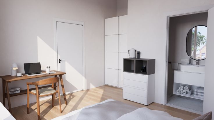 Te Andreas Vesaliusstraat hebben we nog verschillende gloednieuwe kamers met oppervlaktes van ca. 16m2. De units worden bemeubeld verhuurd; dit houdt in dat er een boxspring (140x200), bureau en bureaustoel aanwezig is. Verder is overal een ontbijtblok met oven en koelkast met diepvries voorzien. De gezellige gemeenschappelijke ruimte beschikt tevens over een vaatwasser.