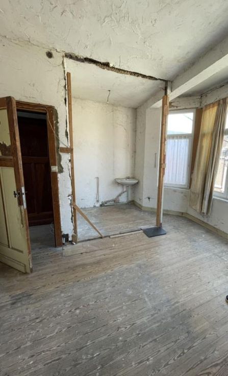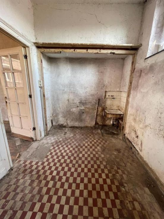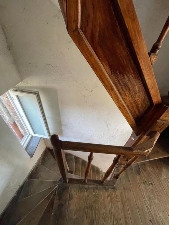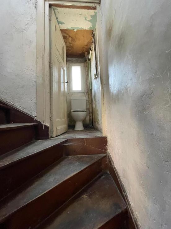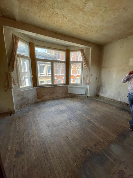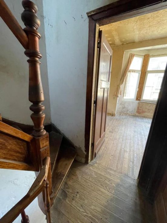 Proche du centre-ville et des commodités. Composition de l’immeuble : • Sous-sol : deux caves ; • Rez-de-chaussée : un garage (avec porte électrique), un hall d’entrée avec cage d’escaliers vers étages ; • 1er étage : une pièce séjour, une cuisine non aménagée ; • Entresol 2ème étage : un WC ; • 2ème étage : deux chambres dont une avec arrivée d’eau et deux petits espaces de rangement (dont un avec le compteur et le coffret électrique). • Année construction entre 1919 et 1930 • Parement extérieur : pierres et briques ; • Menuiserie extérieure : châssis PVC blanc double vitrage ; • Revêtement de sol : plancher et carrelage ; • Chauffage : un radiateur électrique dans le séjour ; • Installation électrique : non conforme ; • PEB : G