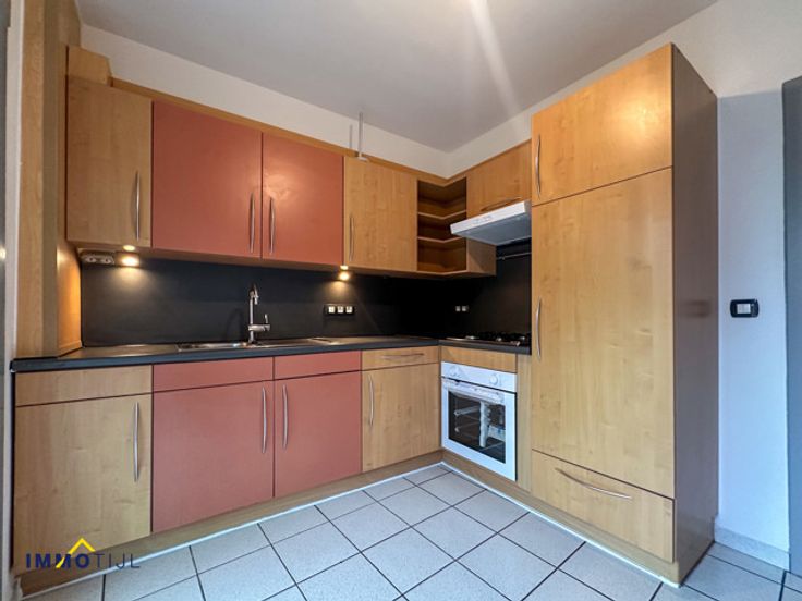 Het appartement bevindt zich op 5 minuten van de op-en afrit van de autostrade E40 en op wandelafstand van winkels, openbaar vervoer en scholen.