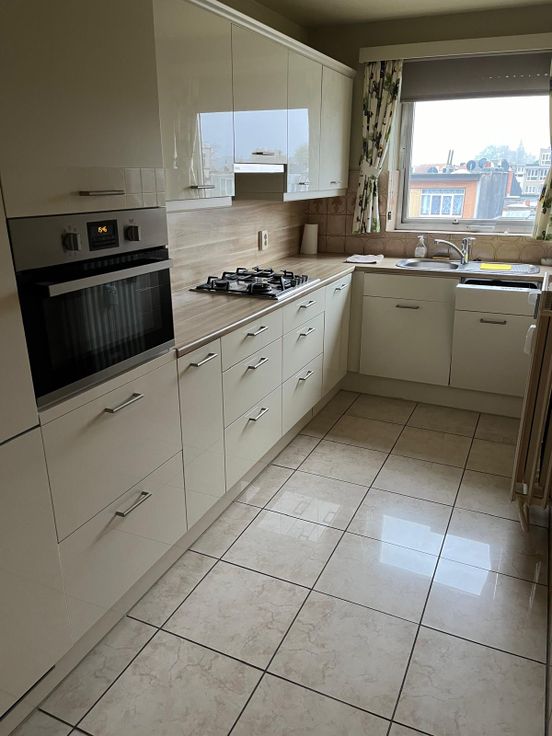 Het appartement zelf bestaat uit een ruime leefruimte met veel lichtinval en beschikt over een automatische zonnewerende screen. 2 slaapkamers waarvan de kleinste toegang geeft tot een terras. De recente keuken beschikt over alle nodige en kwalitatieve toestellen zoals afwasmachine, inductie kookplaat, werkblad, ijskast, diepvries en een combi-oven.