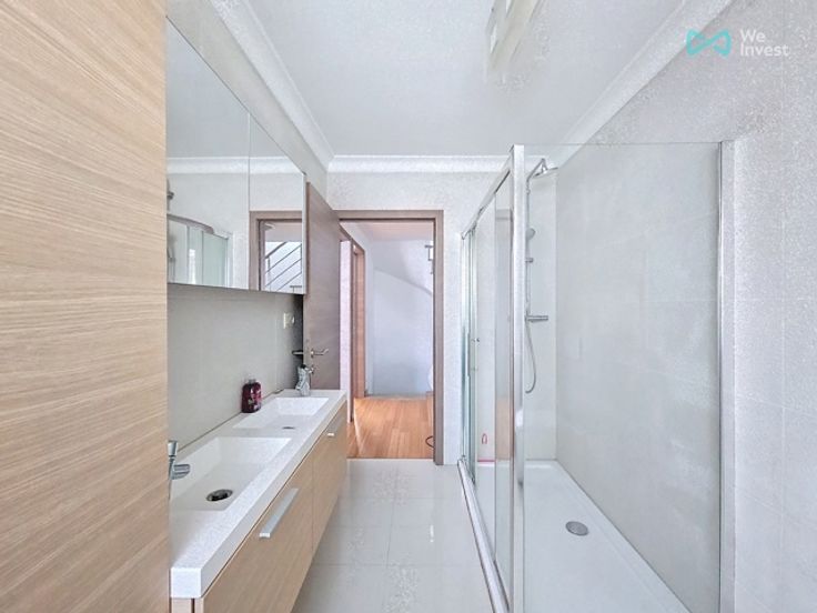 Op de eerste verdieping hebben we de nachthal, een badkamer en 4 slaapkamers waarvan 2 met toegang tot een zeer groot terras.