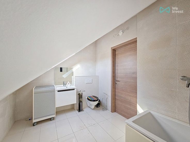 Op de tweede verdieping hebben we nog 2 slaapkamers, 1 badkamer, balkon en een bergruimte.