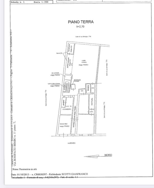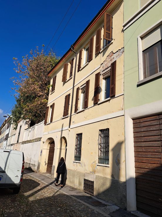 Ancienne demeure familiale divisée en 3 appartements, deux studio, un garage, un ascenseur et une grande cour dans le centre historique de Crémone.