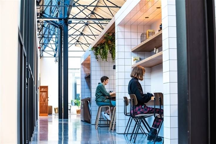 Hypermodern business-center in een oude fluweelfabriek. Perfecte combinatie tussen oud en nieuw.