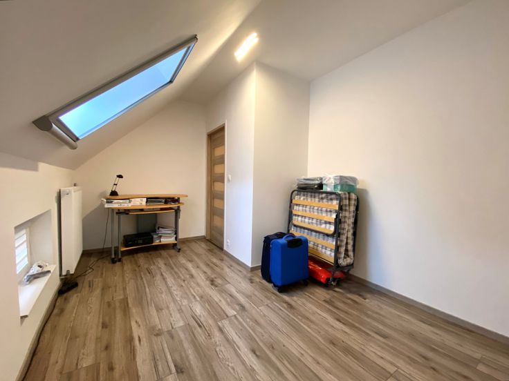 Via de trap naar boven zijn 2 slaapkamers en een zolderluik met uitschuifbare trap.