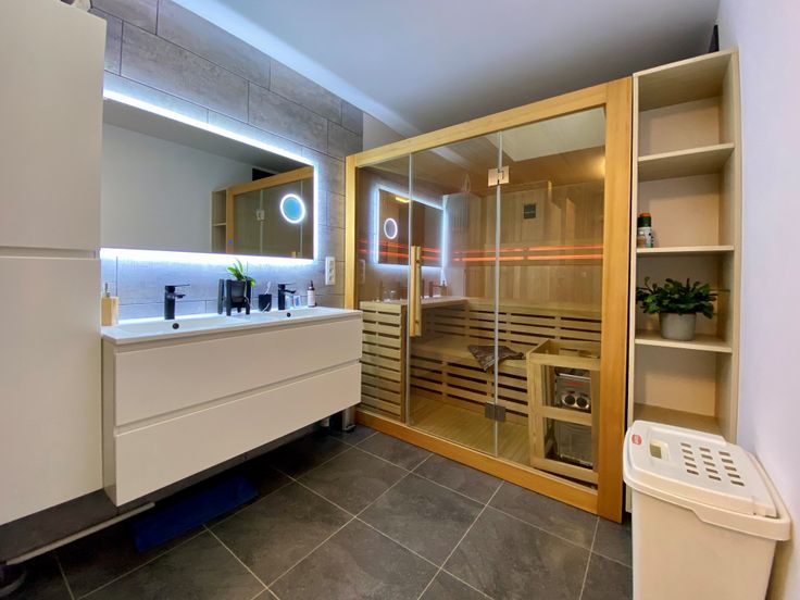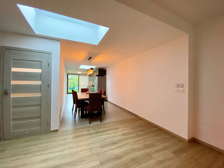 Indeling als volgt: een inkomhal die toegang geeft tot de lichtrijke woonkamer die aansluit op de moderne uitgeruste keuken met zicht op de Zuidgerichte tuin. Door de dakramen is hier extra licht aanwezig (deze zijn ook voorzien van zonnewering en regensensoren!). De uitgeruste keuken heeft aansluitend een ruime bergruimte met aansluiting voor wasmachine en droogkast. Als laatste is er een prachtige badkamer met toilet, douche, dubbele lavabo en sauna voor 4 personen!