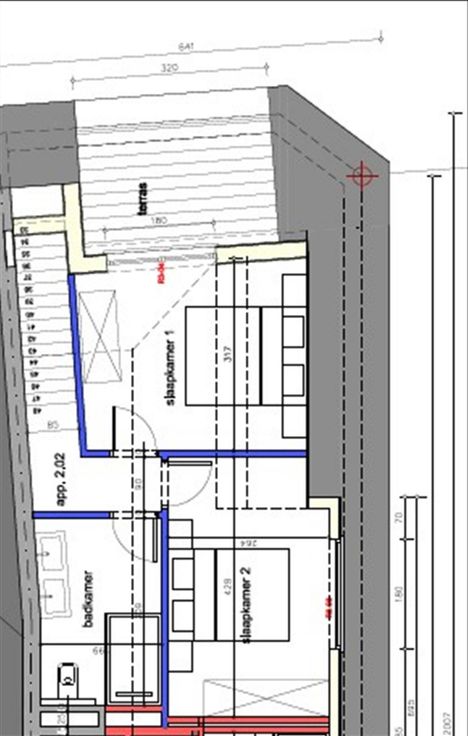 - Terras aan de voorzijde van het appartement.