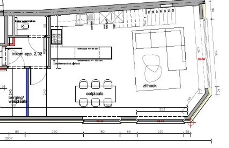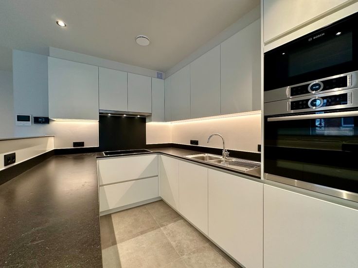 - Moderne open keuken, voorzien van groot werkblad, warme lucht oven, microgolf, vaatwasmachine, inductiekookplaat met dampkap, koelkast met vriesvak en optimaal ingedeelde kastruimte.