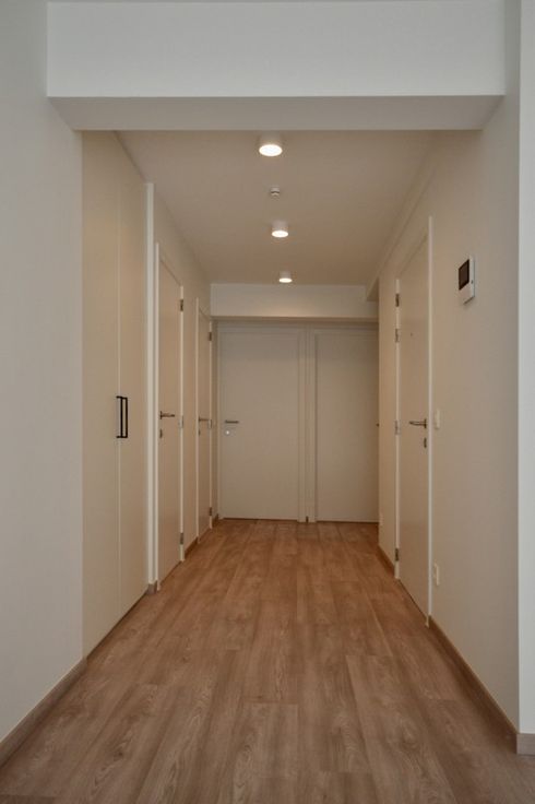 inhoud: ruime inkom, woonkamer met open keuken, berging bij de keuken, badkamer met douche, apart toilet, twee slaapkamers, private kelder, en een gemeenschappelijke fietsenberging op het gelijkvloers.