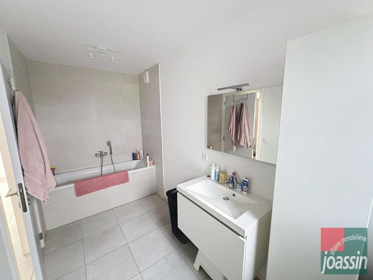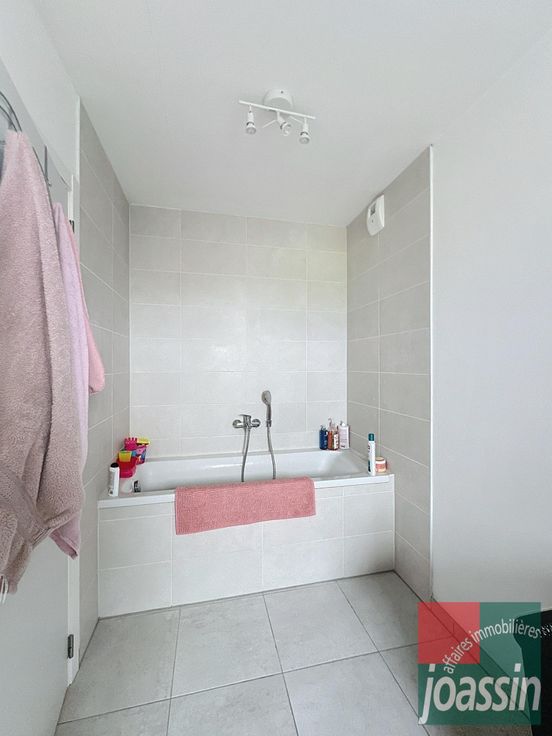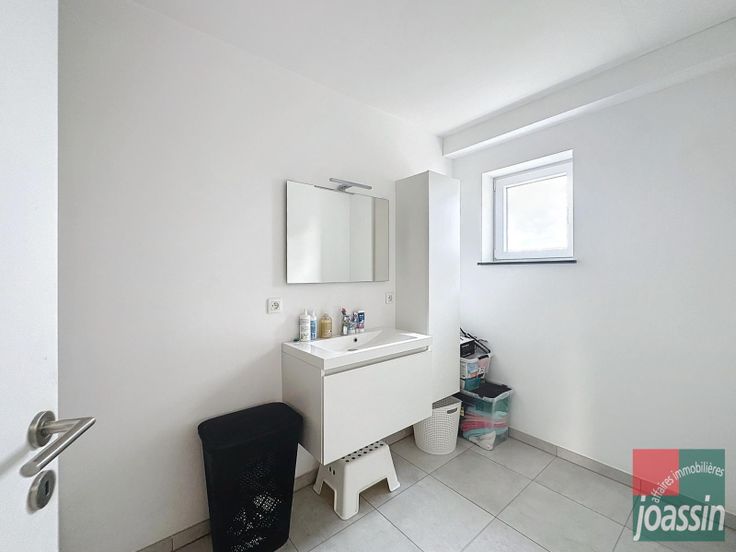 Bel appartement situé au 2e étage d'une résidence récente (pas d'ascenseur), proche de toutes facilités et d'axes autoroutiers. Il se compose: d'un hall d'entrée, d'un living ouvert sur une cuisine équipée, d'une buanderie, de deux chambres, d'une salle de bains avec baignoire et de deux emplacements de parking (un sous carport). Provision charges communes: 50€ - Compteur eau et électrique individuels. Conforts: parlophone, adoucisseur, châssis pvc double vitrage, chauffage par le sol (pompe à chaleur air/eau). Libre le 1er février. Bail de 3 ans - 2 mois de garantie locative. 200€ tvac/partie d'état des lieux d'entrée. PEB: A- E spec: 82 kWh/m².an - E totale: 9.331 kWh/an - n°20221018501755. A visiter sans plus tarder!