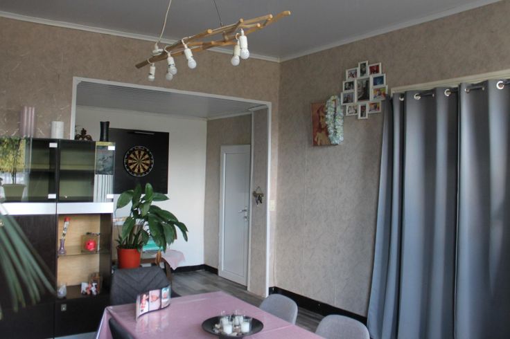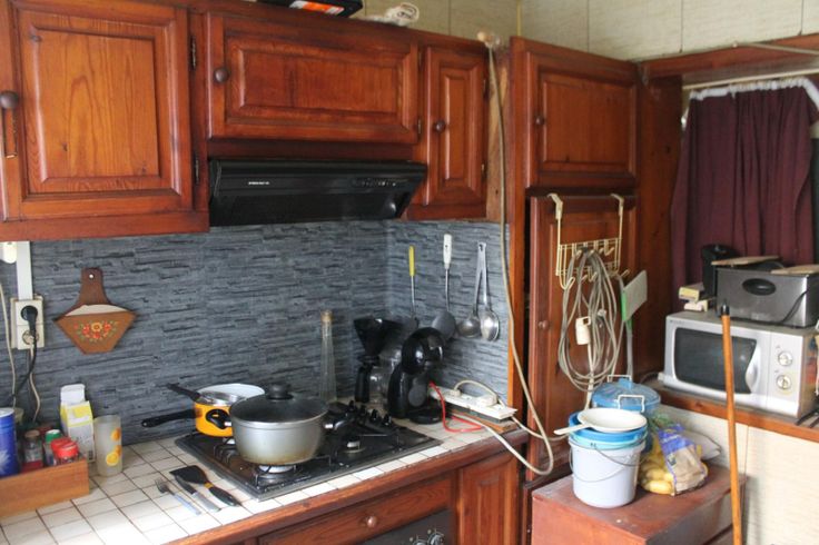 RDC: hall d'entrée, living, cuisine semi-équipée, et salle de douche avec WC.
