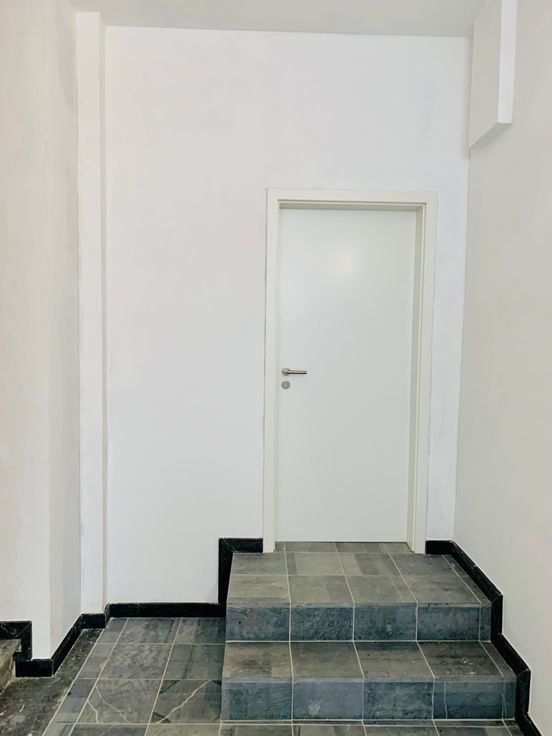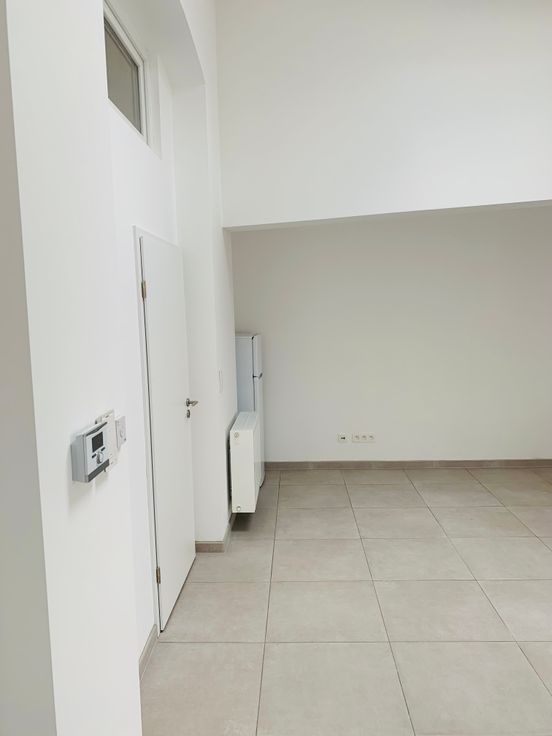 Entrée en pierre de taille, parlophone, carrelé partout et paquet dans la chambre.