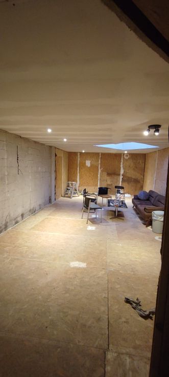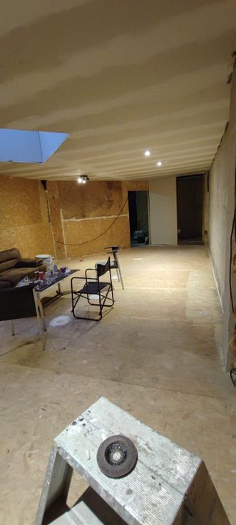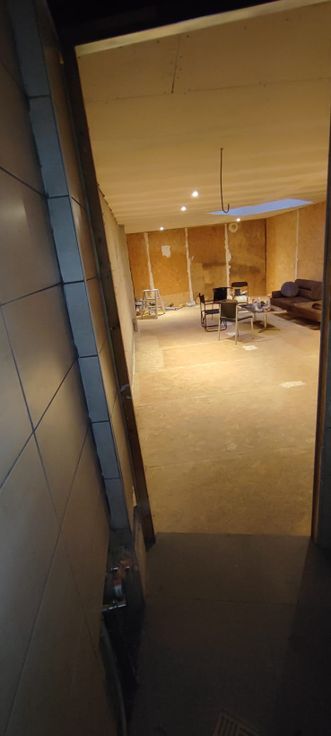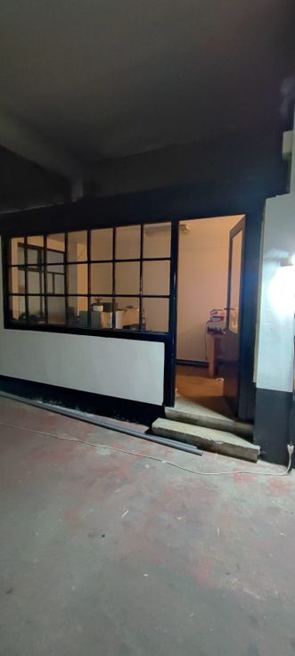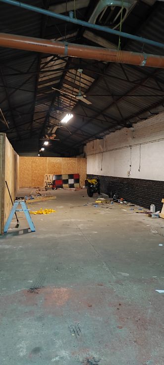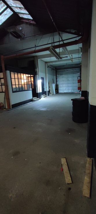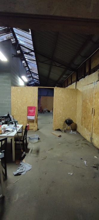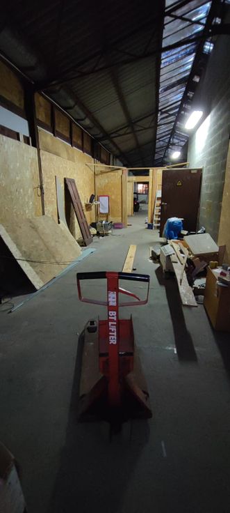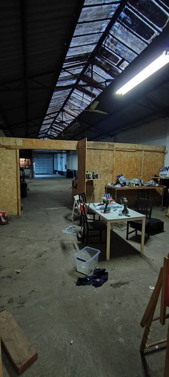 Entrepôt diviser en deux espaces.