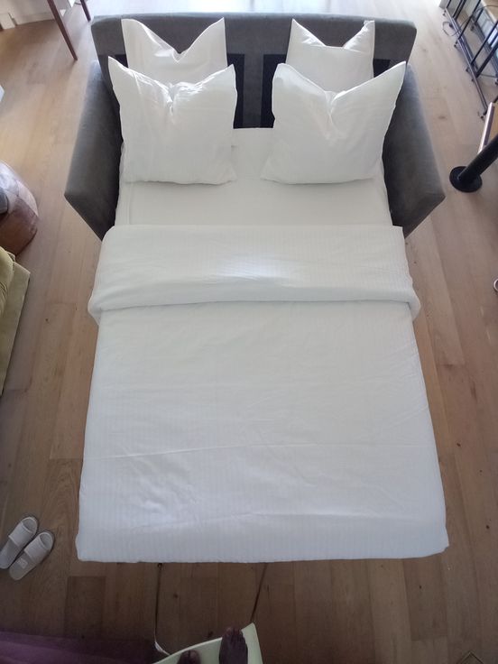 At the heart of the house lies a warm and inviting living room, designed for relaxation and socializing. It includes a sofa bed, providing additional sleeping arrangements for visitors. A flat-screen television with access to all major channels.