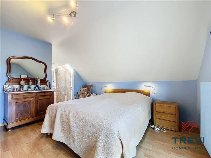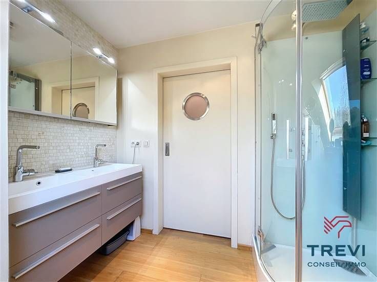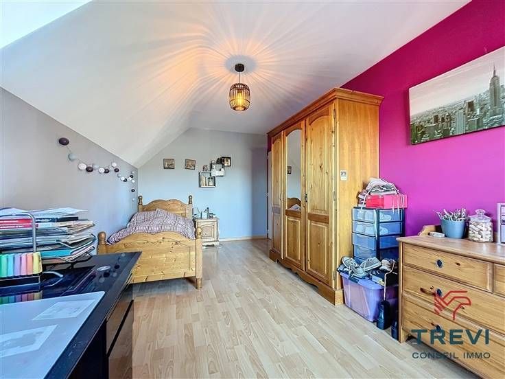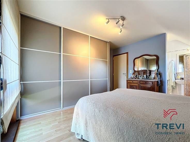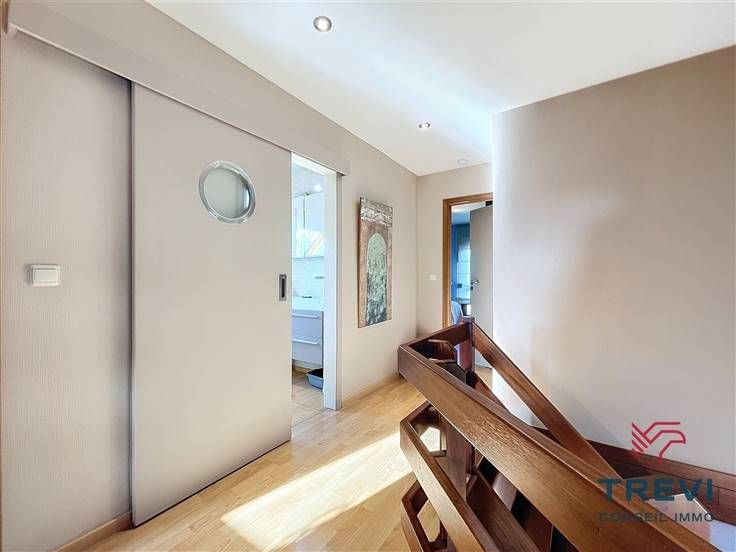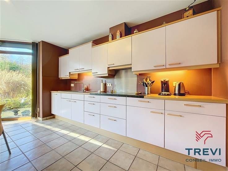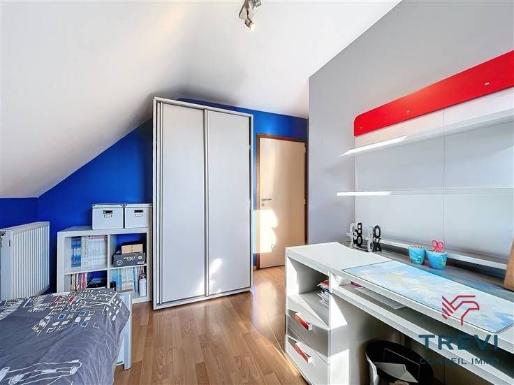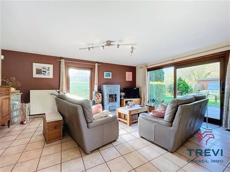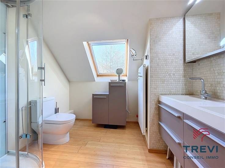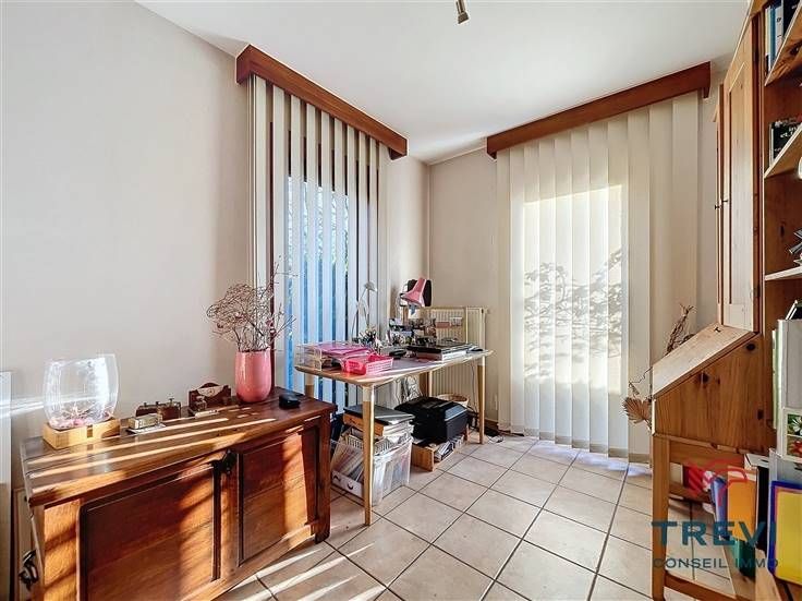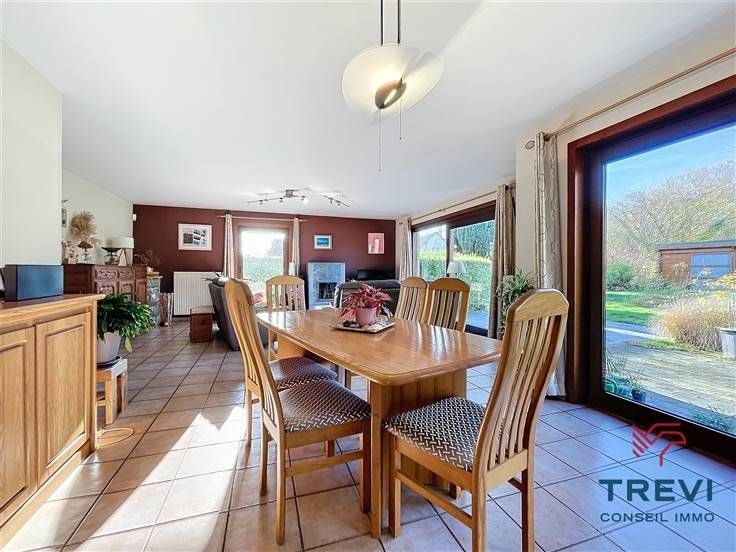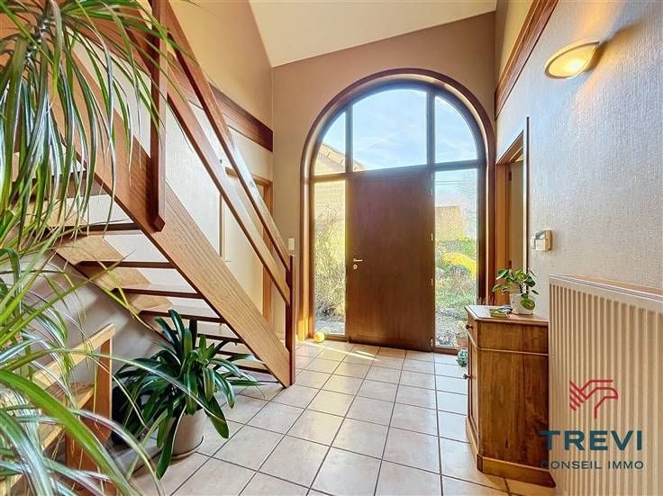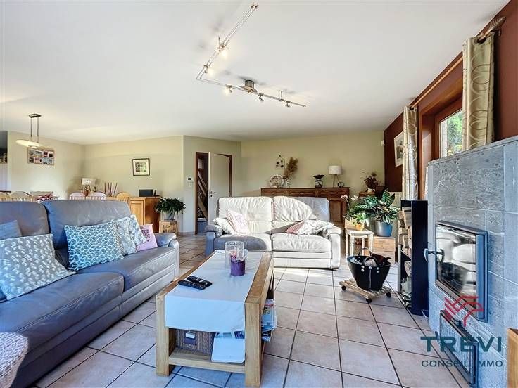 Sorry er is geen nederlandse vertaling beschikbaar. Dans la jolie campagne de Soignies et une rue résidentielle paisible, grande villa aux jolis volumes et beau jardin orienté sud ouest. La villa se compose d'un vaste hall d'entrée de 10 m² avec toilette invités et pièce vestiaire vers le grand séjour lumineux de 50 m² équipé d'une cassette à bois vers la terrasse et le beau jardin. Cuisine ouverte toute équipée de 20 m² avec coin déjeuner. Buanderie séparée de 7 m². Bureau carrelé de 9 m² et grand garage de 35 m². A l'étage, via le hall de nuit, 4 belles chambres dont la chambre parentale de 15 m² et sa salle de douche attenante. Belle salle de douche pour les enfants équipée d'une cabine, d'un wc et d'un beau meuble double vasque. Grandjardin avec terrasse, abri de jardin et étang. Screen et volets électriques. 10 panneaux photovoltaïques placés en 2017. Citerne d'eau de pluie (10 000 l). Système d'alarme. Double vitrage. Chaudière Viessman à condensation de 2012. PEB B. Faire offre à partir de 380.000 €. Infos et visites au 02/355.50.55.