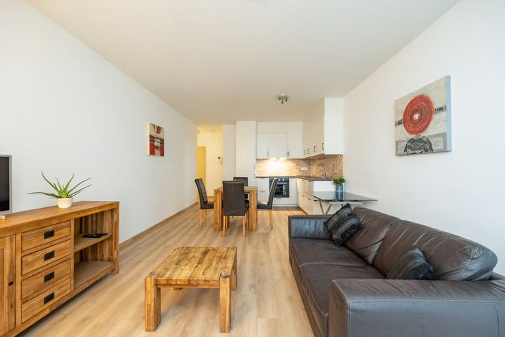 - Ruime en lichte woonkamer met een volledig uitgeruste, moderne open keuken.