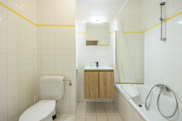 - Badkamer met bad en toilet.