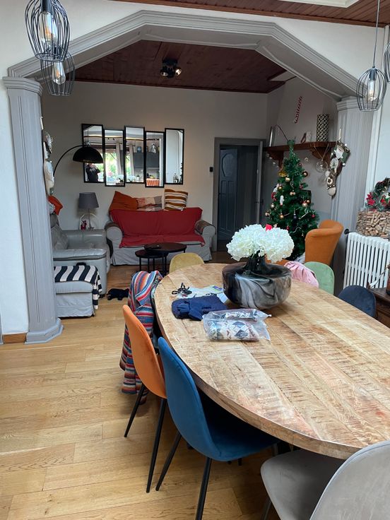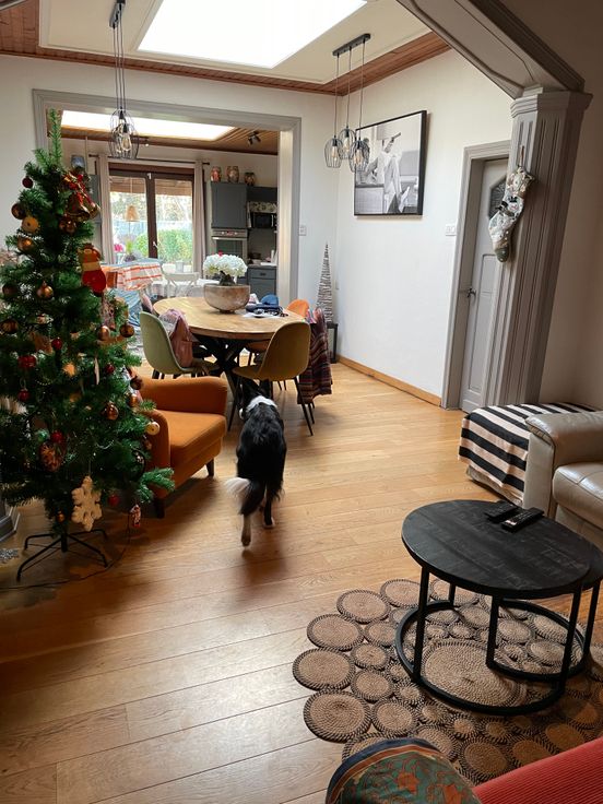 Maison comprenant : hall, bureau, salon, salle à manger, cuisine avec espace repas et poêle à pellets, garde-manger, grandes caves, buanderie, grand atelier, grand garage, hall de nuit, 4 chambres, 2WC, salle de bain, grenier isolé, jardin arboré et complètement clôturé, abri de jardin, terrasse semi-couverte ,BBQ.