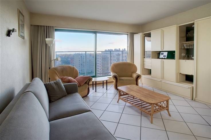 Te renoveren ruime studio op de 9de verdieping met een prachtig uitzicht over het hinterland, gelegen in een eerstelijnsgebouw aan het strand en de duinen.